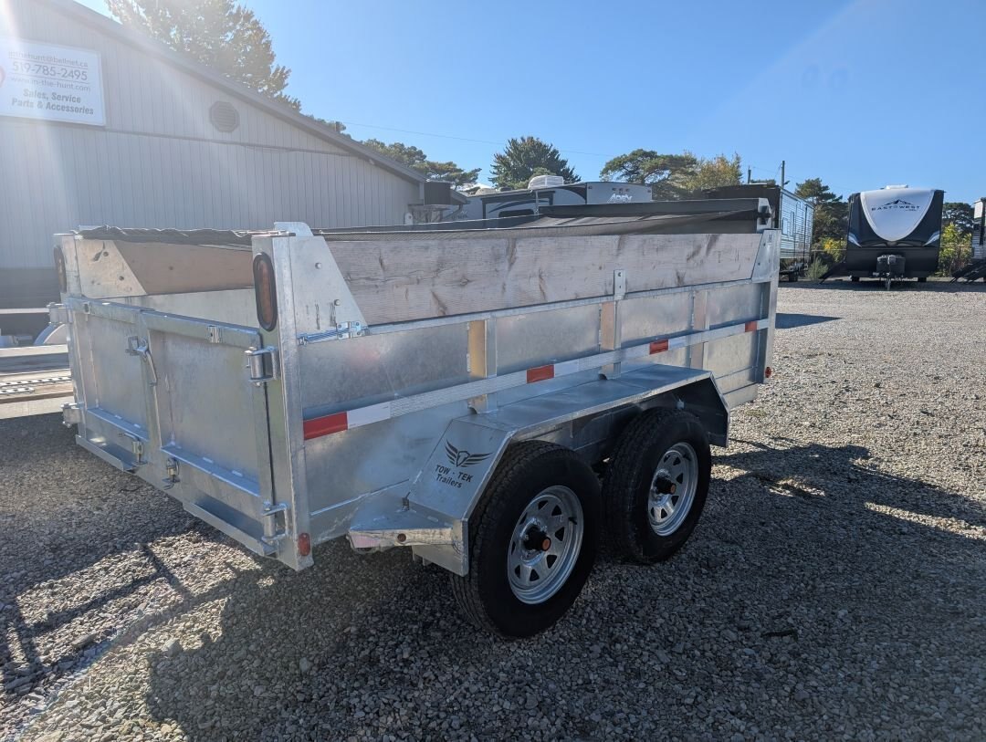 REG: $11,495 SALE: $10,495 The 2025 Tow-Tek 5x10 3.5 Ton Galvanized Dump with tandem 3500lb spring axles just arrived and is priced to move! At just $10,495 this Hydraulic up dump is perfect for business owners, farmers, and landscaping enthusiasts. Financing available OAC. This unit features the following options: - Power Up/Gravity Down Hydraulic Lift - Tandem 3500lb Spring Axles - Heavy Duty Tarp Cover - Galvanized - Adjustable Coupler - Barn Doors - (4) Heavy Duty D-Rings - 5-Year Tow-Tek Warranty
