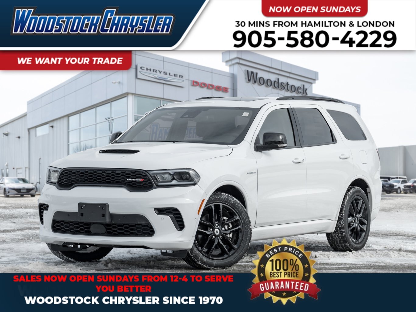 Welcome to Woodstock Chrysler, your premier destination for new and used Chrysler, Dodge, Jeep, and Ram vehicles. Conveniently located on Dundas Street, just 30 minutes from Hamilton and London, Ontario, we are dedicated to providing an outstanding, stress-free sales and service experience. Our Commitment At Woodstock Chrysler, we pride ourselves on offering a vast inventory that suits every driver\'s needs. Whether youre searching for a reliable commuter car, a luxury performance vehicle, an SUV, or a truck, we have it all. Our selection features a wide range of makes and models from various manufacturers, ensuring you find the perfect vehicle for your lifestyle. Quality and Assurance All of our pre-owned vehicles undergo a comprehensive 180-point inspection process. This meticulous attention to detail ensures a stress-free and straightforward buying experience, providing you with the peace of mind you deserve when purchasing a vehicle from us. Why Choose Woodstock Chrysler? Exceptional Customer Service: Our dedicated sales staff is here to ensure your experience is enjoyable and pressure-free. Prime Location: Easily accessible from Hamilton and London, we\'re ideally located to serve our community and beyond. Great Value Experience Small Town, Big Savings with competitive pricing and exceptional deals on our wide selection of vehicles. Stay Connected Follow us on Instagram @woodstock_chrysler and Facebook Woodstock Chrysler to stay updated on the latest news, offers, and events.Best Price Guarantee Disclaimer Our Best Price Guarantee is based on continuous market analysis. We review current market conditions weekly and price all used vehicles according to comparable year, make, model, mileage, condition, colour, and equipment to ensure competitive and fair market pricing. For new vehicles, pricing is determined through regular market evaluations, availability, and days in inventory. All Chrysler dealers in Ontario purchase new vehicles from Stellantis Canada at the same wholesale pricing. Therefore, if you receive a written quote on an identical new vehicle (same model, year, trim, equipment, and availability) from another authorized Chrysler dealer in Ontario, we will match that price. Offer must be for an in-stock vehicle, available for immediate sale, and presented in writing. Excludes fleet, employee, affiliate, special group, auction, clearance, or dealer-trade units. Pricing does not include taxes, licensing, insurance, or government fees.Best Price Guarantee Disclaimer Our Best Price Guarantee is based on continuous market analysis. We review current market conditions weekly and price all used vehicles according to comparable year, make, model, mileage, condition, colour, and equipment to ensure competitive and fair market pricing. For new vehicles, pricing is determined through regular market evaluations, availability, and days in inventory. All Chrysler dealers in Ontario purchase new vehicles from Stellantis Canada at the same wholesale pricing. Therefore, if you receive a written quote on an identical new vehicle (same model, year, trim, equipment, and availability) from another authorized Chrysler dealer in Ontario, we will match that price. Offer must be for an in-stock vehicle, available for immediate sale, and presented in writing. Excludes fleet, employee, affiliate, special group, auction, clearance, or dealer-trade units. Pricing does not include taxes, licensing, insurance, or government fees.Best Price Guarantee Disclaimer Our Best Price Guarantee is based on continuous market analysis. We review current market conditions weekly and price all used vehicles according to comparable year, make, model, mileage, condition, colour, and equipment to ensure competitive and fair market pricing. For new vehicles, pricing is determined through regular market evaluations, availability, and days in inventory. All Chrysler dealers in Ontario purchase new vehicles from Stellantis Canada at the same wholesale pricing. Therefore, if you receive a written quote on an identical new vehicle (same model, year, trim, equipment, and availability) from another authorized Chrysler dealer in Ontario, we will match that price. Offer must be for an in-stock vehicle, available for immediate sale, and presented in writing. Excludes fleet, employee, affiliate, special group, auction, clearance, or dealer-trade units. Pricing does not include taxes, licensing, insurance, or government fees.Best Price Guarantee – Disclaimer Our Best Price Guarantee is based on continuous market analysis. We review current market conditions weekly and price all used vehicles according to comparable year, make, model, mileage, condition, colour, and equipment to ensure competitive and fair market pricing. For new vehicles, pricing is determined through regular market evaluations, availability, and days in inventory. All Chrysler dealers in Ontario purchase new vehicles from Stellantis Canada at the same wholesale pricing. Therefore, if you receive a written quote on an identical new vehicle (same model, year, trim, equipment, and availability) from another authorized Chrysler dealer in Ontario, we will match that price. Offer must be for an in-stock vehicle, available for immediate sale, and presented in writing. Excludes fleet, employee, affiliate, special group, auction, clearance, or dealer-trade units. Pricing does not include taxes, licensing, insurance, or government fees.