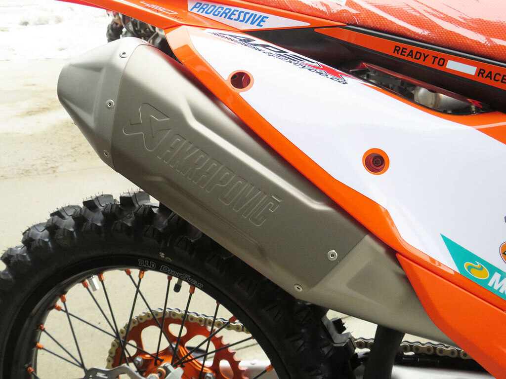 When the gate drops you need to be the first to off the line in a bid to rule (and make) the roost. The 2026 KTM 450 SX-F FACTORY EDITION boasts one of the strongest and most versatile 4-stroke powerplants in the pits, with its SOHC engine proving to be the perfect example of advanced engineering. With class-leading peak power output, and an overall engine weight of only 59 lb (26.8 kg), you'll leave the competition with more than a little mud on the face. The 2026 KTM 450 SX-F FACTORY EDITION features an updated Akrapovic muffler, intake, and mapping, which increases rideability while meeting the latest FIM and AMA sound regulations. Crafted from lightweight titanium, the muffler's premium finish reflects its high-performance design -- and is available exclusively on this limited-run model.