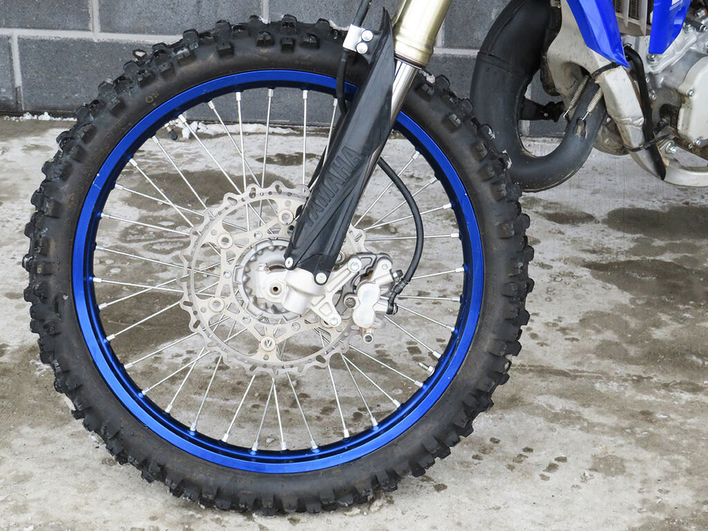 The 2020 YZ125X is race-ready with an aluminum tapered handlebar, YZ-F-style foot pegs, gripper seat, 18-inch rear wheel, sealed O-ring chain, off-road focused tires and suspension settings, a standard side stand and fuel tank petcock with reserve position.